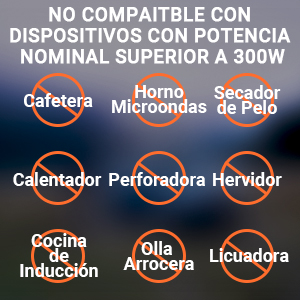 | x3 Salidas CC: x1 12V/10A puerto de mechero, x2 12V/3A puertos | |